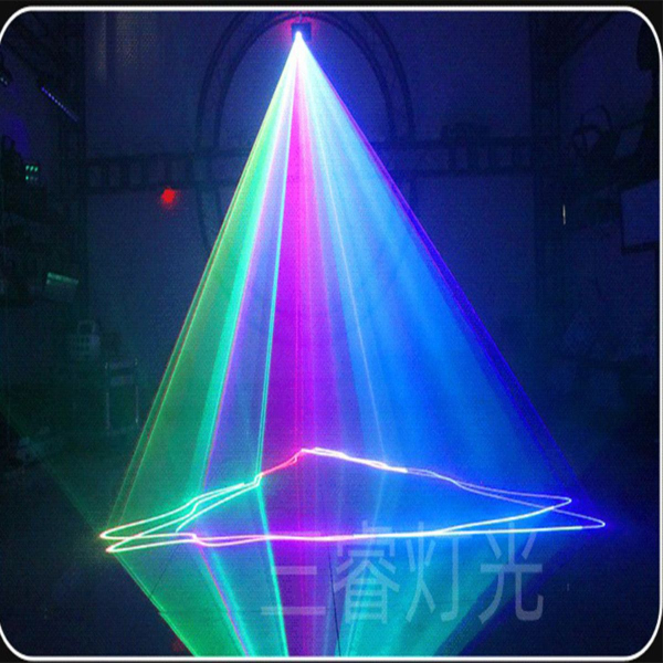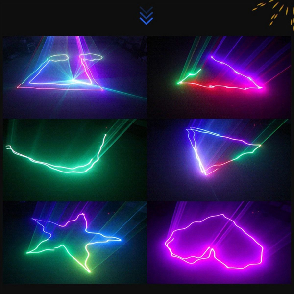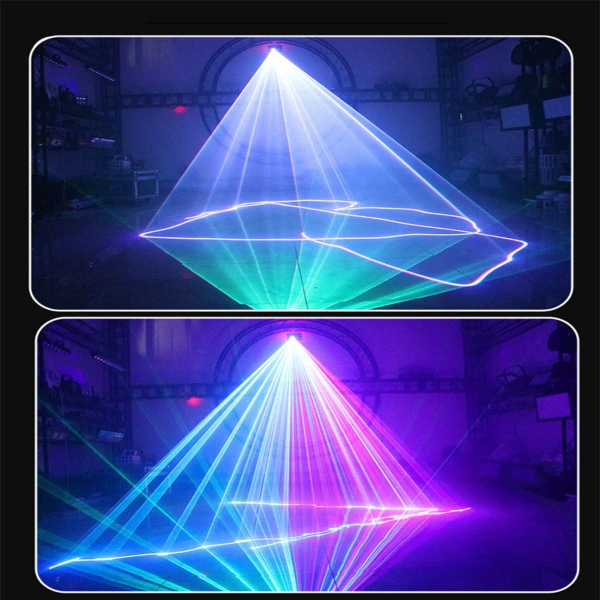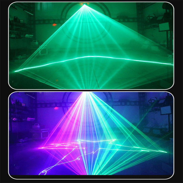Sức mạnh của đèn đến từ bóng laser RGB công suất lớn 3W mang lại độ phủ của tia cực kỳ rộng và khuếch đại vào không gian sân khấu cùng background sân khấu với các hiệu ứng 3D, hoạt hình động, hoa văn, và biểu tượng trừu tượng đem đến show trình diễn nhạc họa ấn tượng.